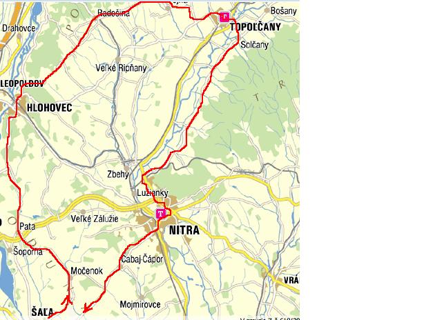 Sala - Mocenok - Horna Kralova - Pata - Dvorniky - Hlohovec - Teplicky - Horne Otrokovce - Radosina - Bojna - Topolcany - Solcany - Dolne Lefantovce (tradicna zastavka v penzione Elefant :D ) - Nitra - Cabaj - Sala